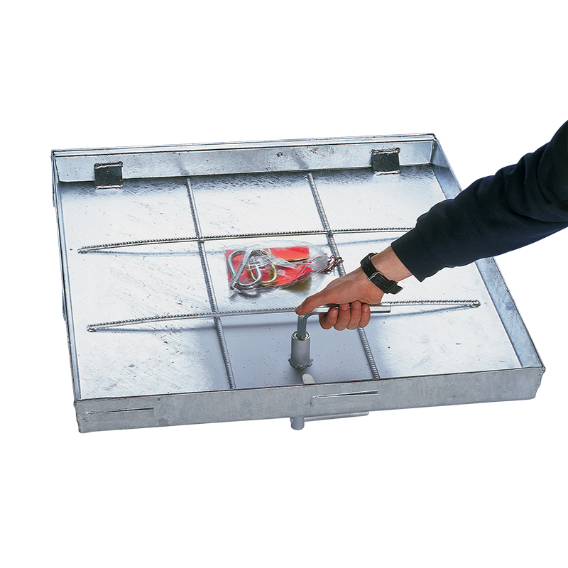 Centralno zaklepanje: Tip BV-GDZ pokrov je opremljen s centralnim zaklepanjem. Pokrov se lahko odpre od zgoraj s pomočjo posebnega ključa in spodaj z uporabo vgrajenega ročaja. Vsebuje varovalo, da prepreči zapiranje odprtega pokrova.