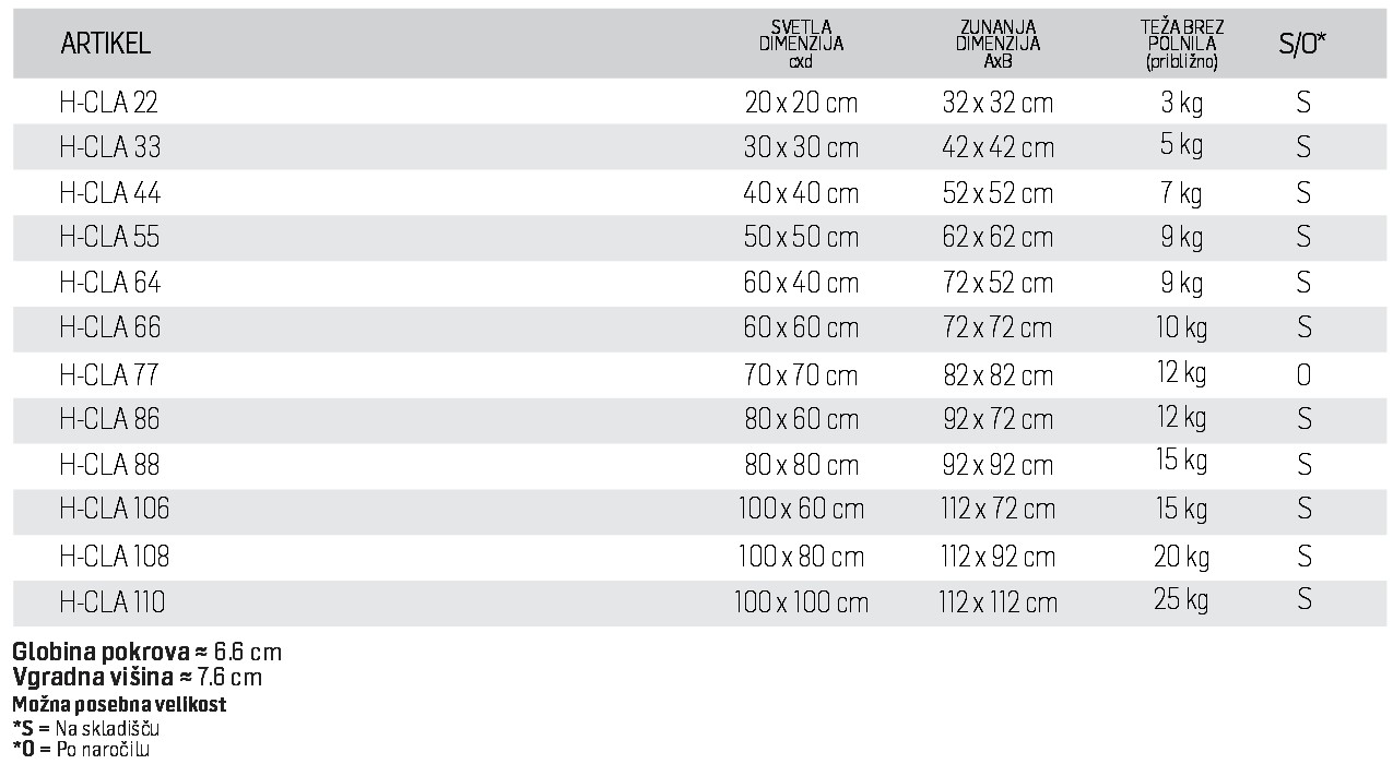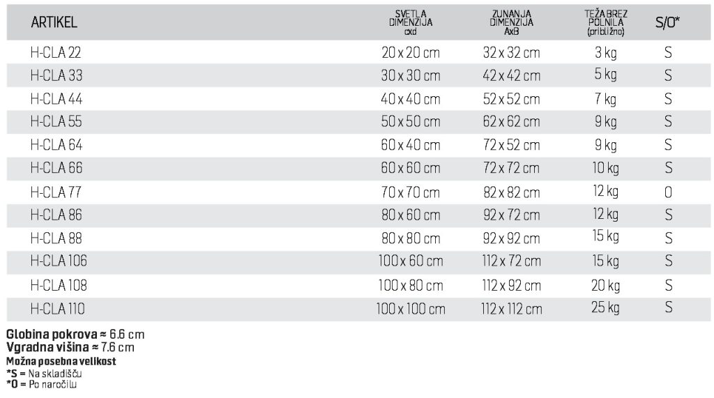 Namestitev: Namestitev mora biti izvedena v skladu z navodilom proizvajalca. V primeru vodotesnih pokrovov je treba paziti na tesnjenje zunanjega okvirja.