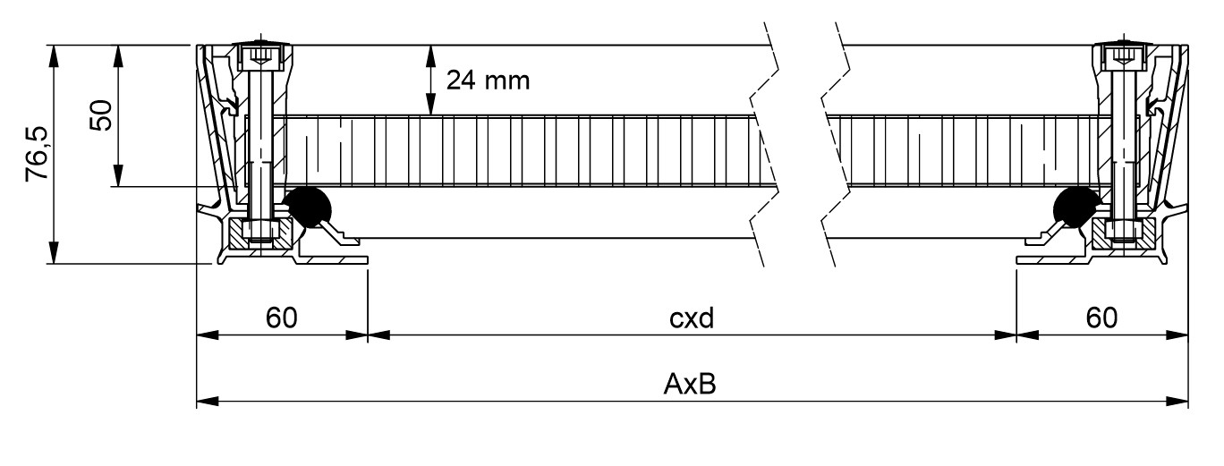 Material: Okvir iz ekstrudiranega aluminija. Pokrov iz ekstrudiranega aluminija, vezan na kompozitni aluminij plošče iz satja (z belim premazom). Vijačni spoji iz nerjavečega jekla. EPDM tesnilo