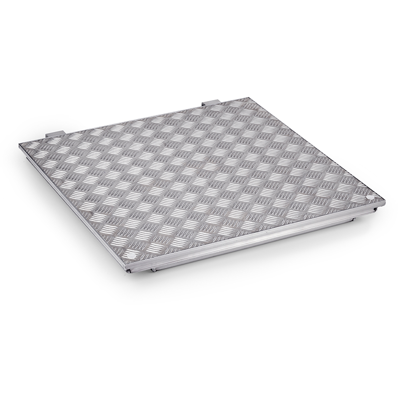 Material: Okvir iz ekstrudiranega aluminija. Pokrov iz 3/4,5 mm aluminijaste šahovnice. Aluminijasta ojačitev na spodnja strani. Vijak iz nerjavečega jekla in EPDM tesnilo.