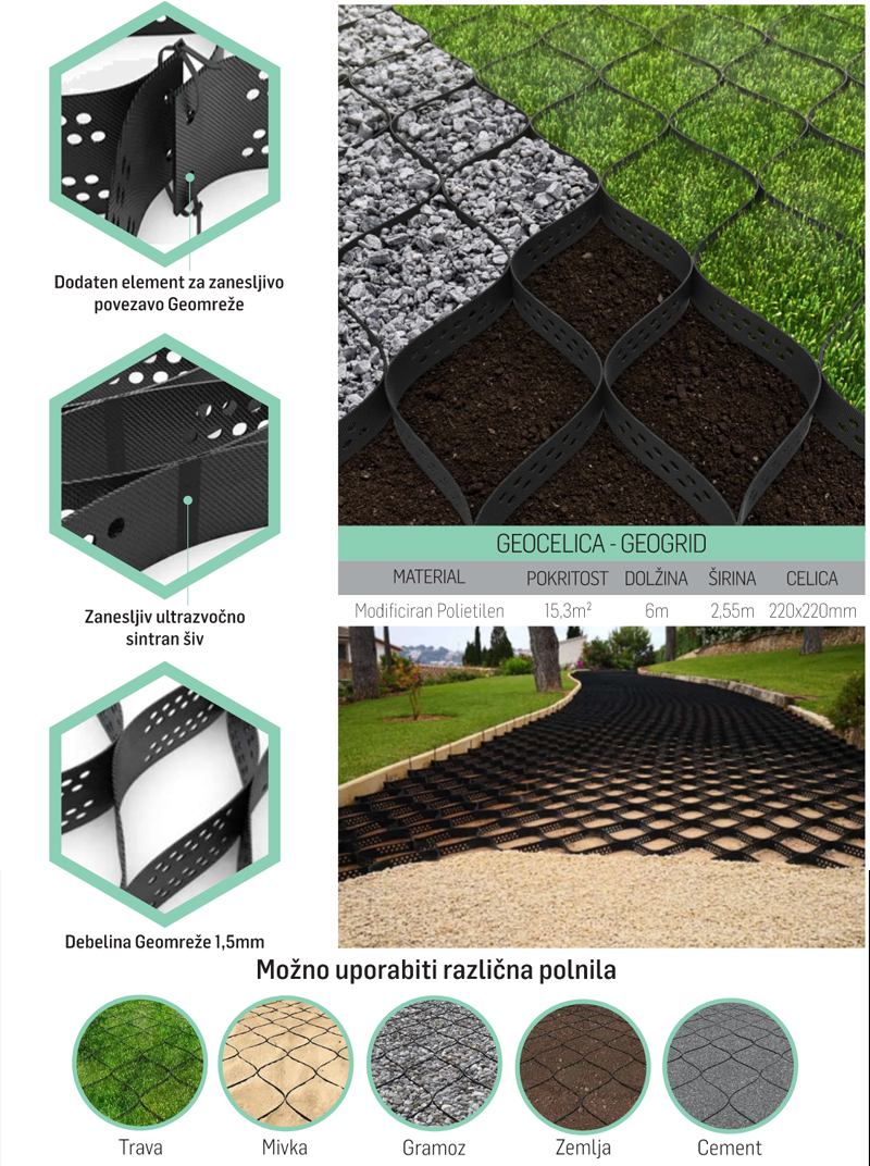 Kje uporabiti GEOcelice višine H150mm?