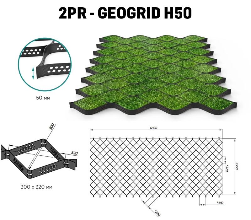 A01g Geocelice 2PR – Geogrid H50, H100, H150 in H200