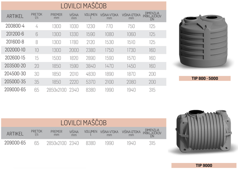 Lovilci maščob so proizvedeni v skladu z Evropskim standardom EN 1825.