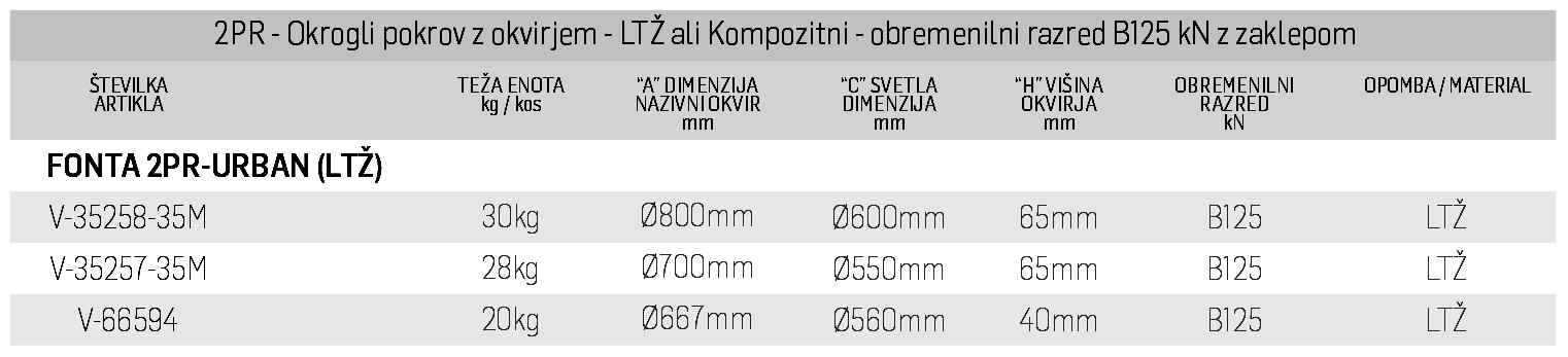 A07 LTŽ Pokrov okrogli – Fonta B125kN 550mm