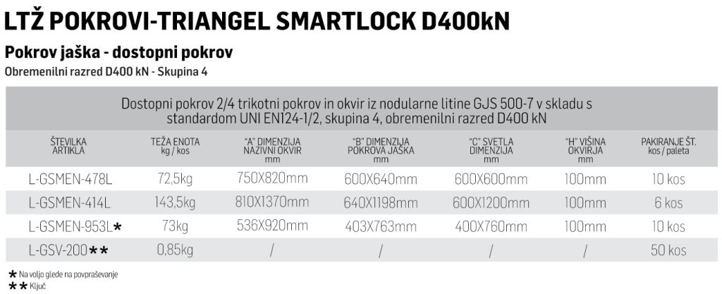 A44 LTŽ Pokrov – TRIANGEL SMARTLOCK D400kN 400X760mm