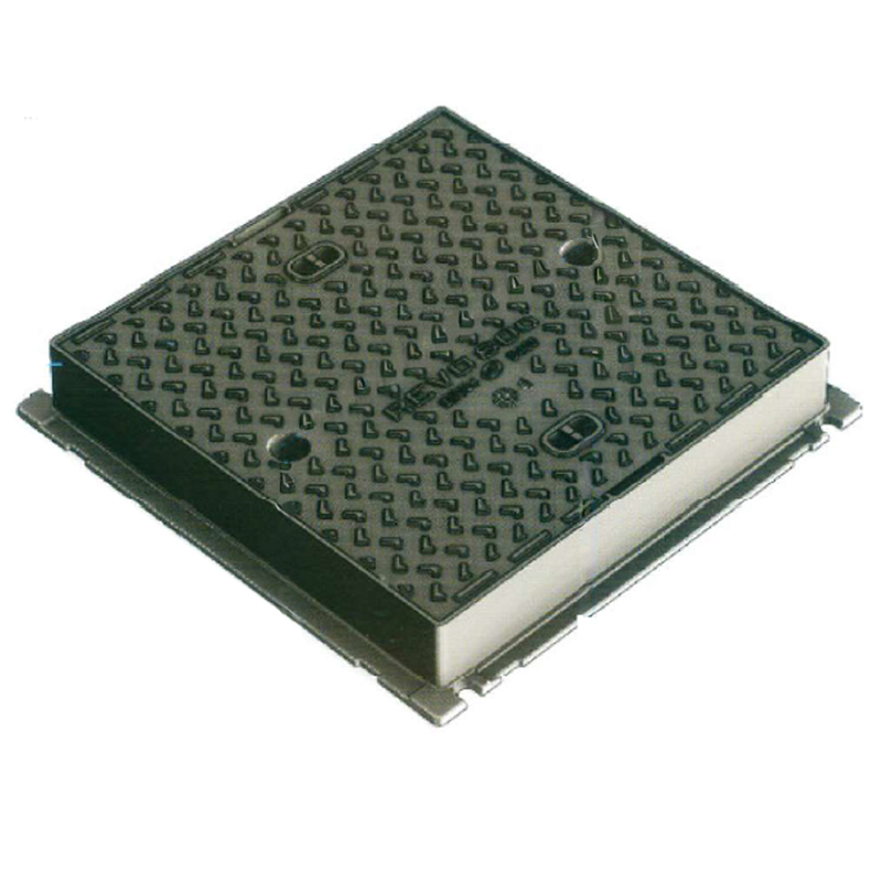 LTŽ pokrov 400×400 D400 z okvirjem 2PR-RE, z vgrajenim proti hrupnim tesnilom, opcija z ročnim zaklepom in 2x držala za odpiranje, zunanje dimenzije 474×474 mm, višina 100 mm, skladno standardom EN 124-2