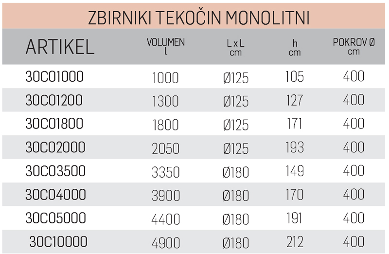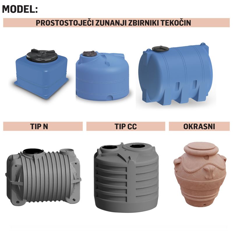 Zbirniki tekočin so namenjeni za zbiranje vseh vrst tekočin (voda, kislina, deževnica, odpadne vode, …). Izdelani so iz visoko kvalitetnega in odpornega PE-HD materiala (polietilen visoke gostote), s čimer zagotavljajo dolgo življenjsko dobo in visoko obstojnost.