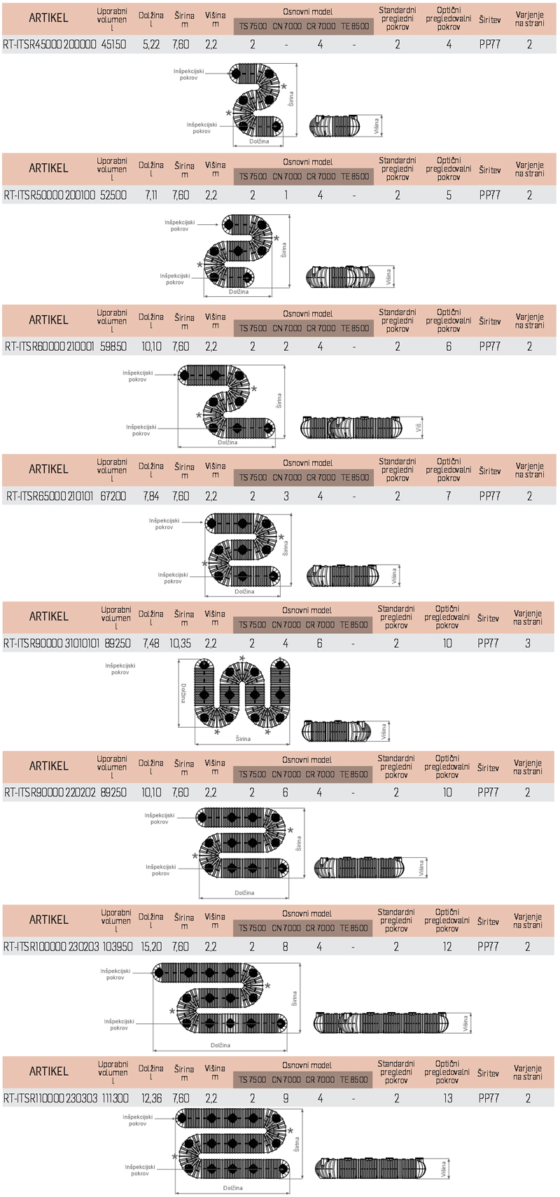 Opomba: Za večje velikosti se je potrebno obrniti na tehnično službo